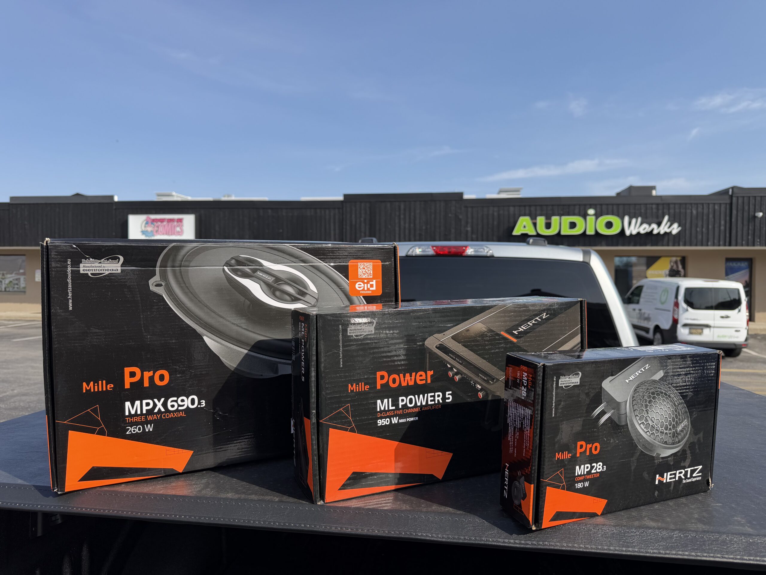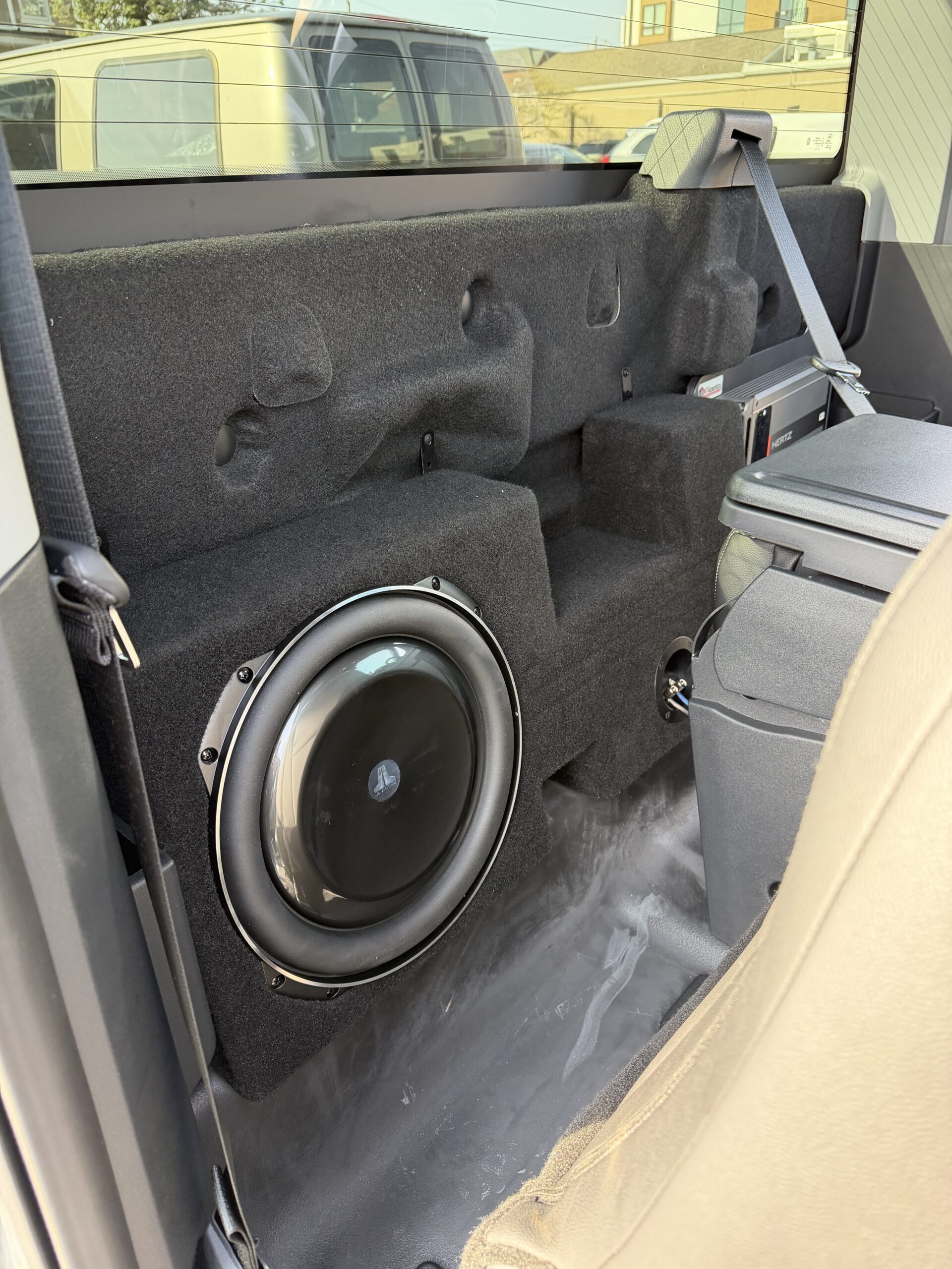 We had the pleasure of working on this 2025 Ford F150 regular cab truck brought to us by a returning customer. This truck has been completely built up with horsepower and it was time to make the audio match! We installed Hertz MPx690.3 speakers in the front door to bring that full stage audio alive. Next we added Hertz ML28.3 Tweeters in the front A-pillar to make the highs a little more present to compliment the added subwoofer. Next the truck got a custom subwoofer box that got matched to a JL Audio 13TW5 13.5″ shallow mount subwoofer to make sure our customer really “feels the bass”! To finish this beast off, we installed a custom amp rack to house the crossovers, resistors and to properly display the workhorse of this system. The MLPower5 roars this audio alive providing 2- channels for the 6×9’s and 2 channels for the tweeters and providing 550 watts for the JL Audio 13.5″ sub. The audio in this truck will make our customer smile for years to come! After throwing some tint on this beauty all we have left was to deliver it! Stop by AudioWorks and let us help you build your dream audio system!