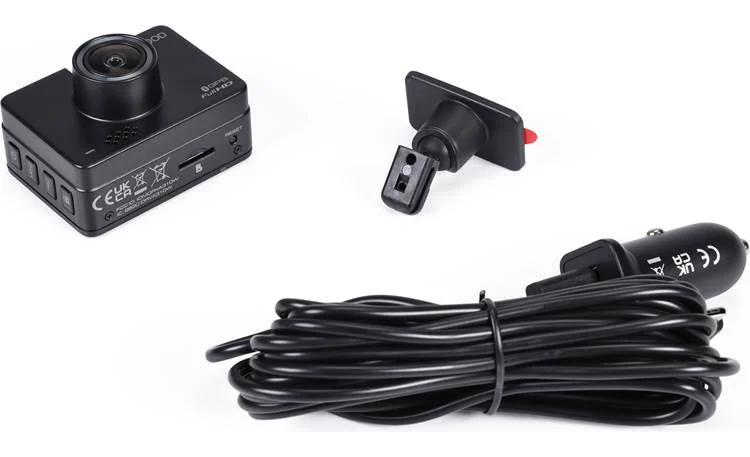 The camera also comes with an adhesive camera mount, along with a vehicle charger for power. The camera accepts microSD cards up to 256GB (not included) for video storage of up to 2,360 minutes.