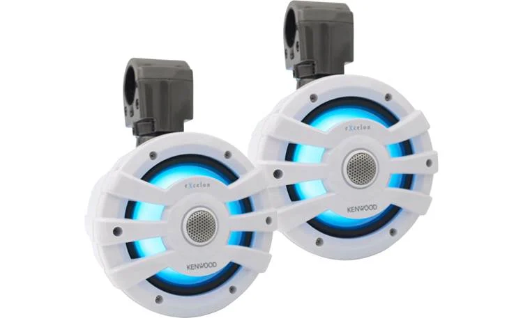 Kenwood has engineered these speakers to meet IPX6 certification, so they’re protected from almost any moisture, including from powerful sprays of water. Three sets of mounting clamps are provided for a secure fit on 1.5″ to 2″ bars, whether on your boat or your ATV. Durable and UV-resistant grilles and enclosures will stand up to tough conditions on the water or in the backcountry. The speakers are available in black or white.